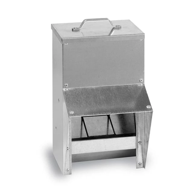 Servez la nourriture de vos poules dans cette mangeoire à trémie aussi solide que pratique avec sa visière qui protège les aliments de la pluie.