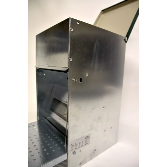 Utilisez cette mangeoire en tôle galvanisée, avec son système anti nuisible à pédale, elle empêchera les rongeurs et les oiseaux de voler la nourriture de vos poules et volailles !