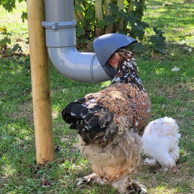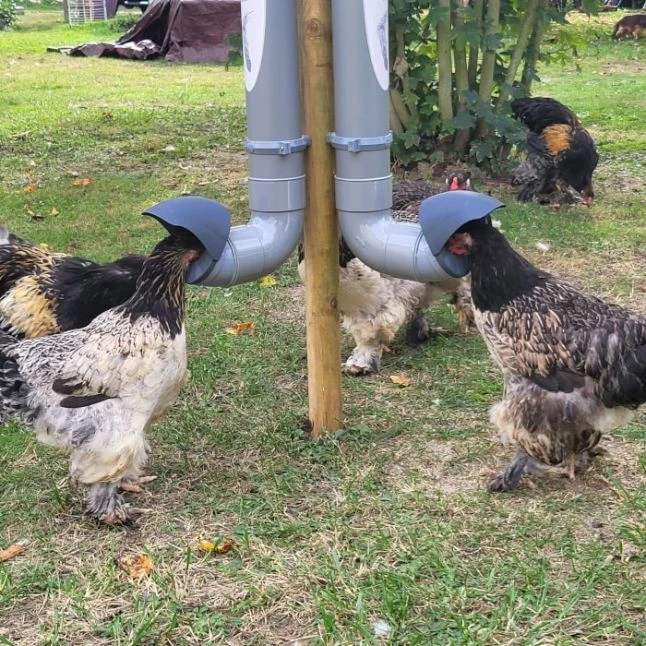 Offrez à vos poules un accès à une nourriture propre et à l’abri des intempéries grâce à cette mangeoire verticale astucieusement conçue.