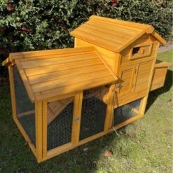 Poulailler Deluxe Rouge Toit Shingle Vert 10 à 12 Poules Avec Extension Parc Grillagé