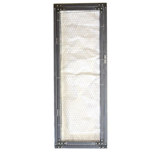 Votre porte en acier galvanisé avec panneau intérieur grillagé sera livrée avec son cadre extérieur.
