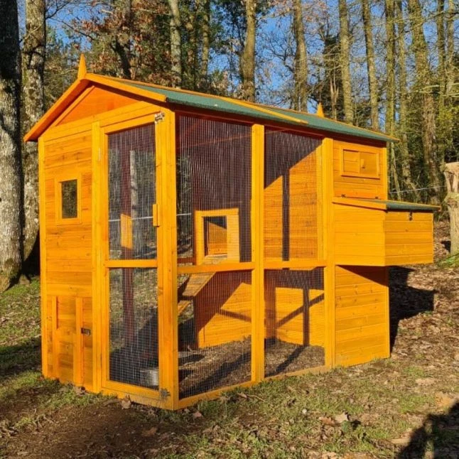 Elles pourront profiter d’un espace intérieur spacieux dans lequel elles trouveront deux grands perchoirs et un pondoir divisé en deux nichoirs. Elles s’y relaieront pour pondre et vous ramasserez facilement vos œufs grâce à son toit séparé qui le rend accessible de l’extérieur.
