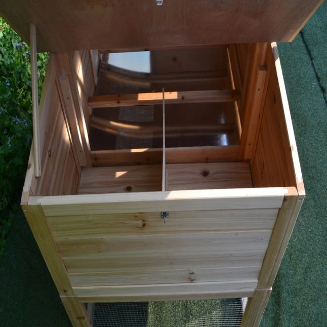 Le pondoir, divisé en deux nichoirs et intégré à la partie nuit, est lui aussi accessible de l’extérieur, ce qui est très utile pour la récolte des œufs.